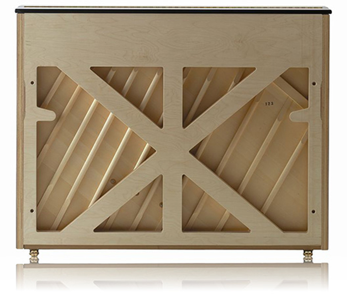 約20トンにも及ぶ弦の張力をこの支柱でしっかり支えフレームのわずかな反りも防ぎ、安定した音を保つのに採用されています。