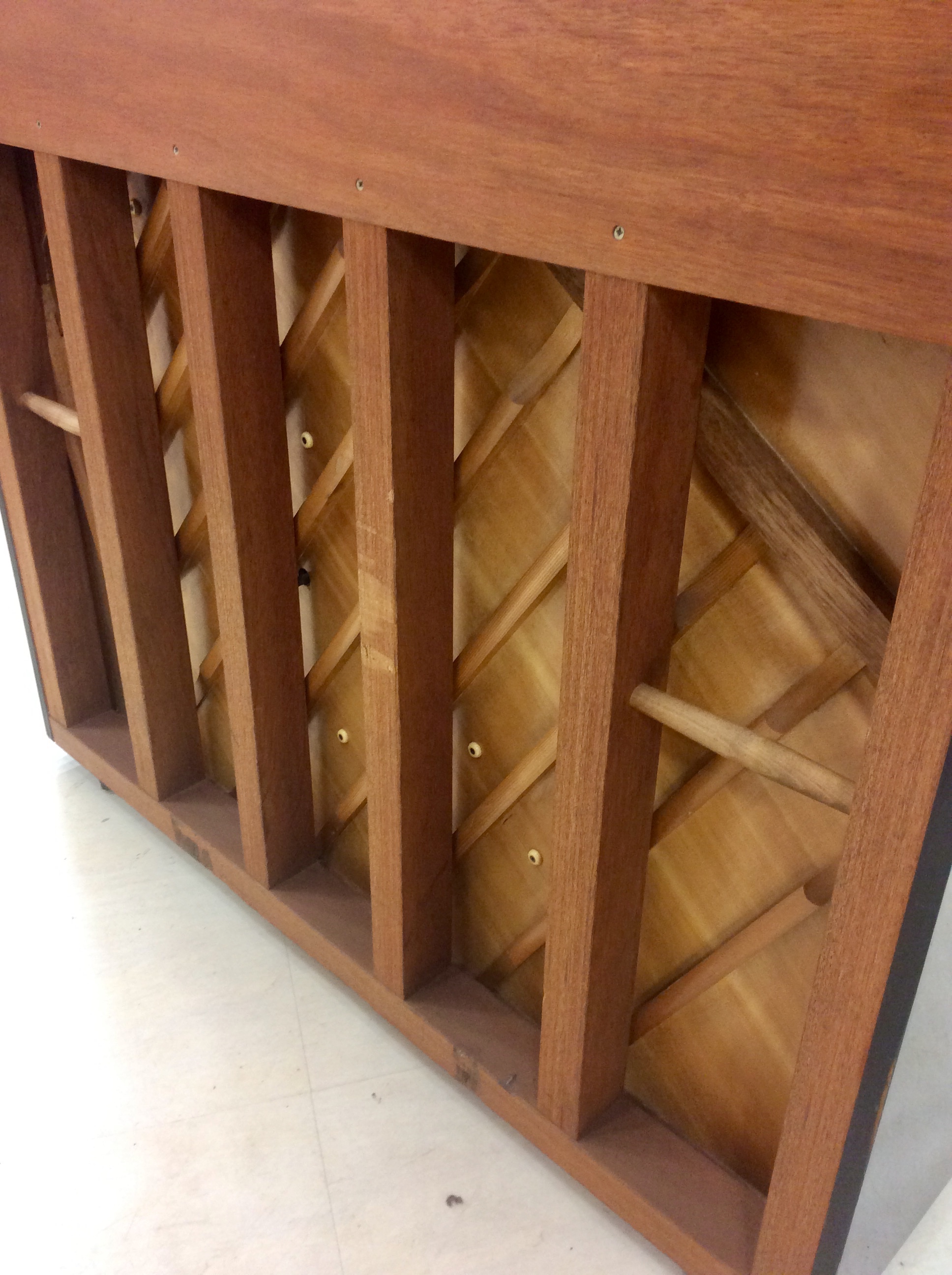 アップライトピアノの後ろ側を見ると何本か柱(支柱)があります。